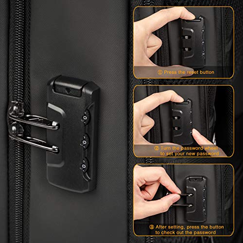 USB CHARGING PORT AND LUGGAGE BLET — Carry on hard case laptop backpack is equipped with a theftproof 3-digit lock for protecting your valuable items. Don’t worry about thefts easily opening your backpack when you are traveling or lining up; With a built-in USB charger outside and charging cable inside, the men backpack offers you a more convenient way to charge your electronic device at any time and anywhere. (This backpack doesn’t power itself, you need a power bank to charge it.)