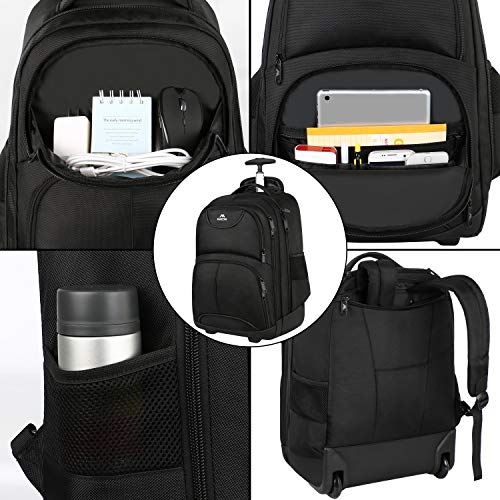 Rolling Backpack, MATEIN 17 inch Water Resistant Wheeled Laptop Backpack, Carry on Luggage Business Bag, College Student…