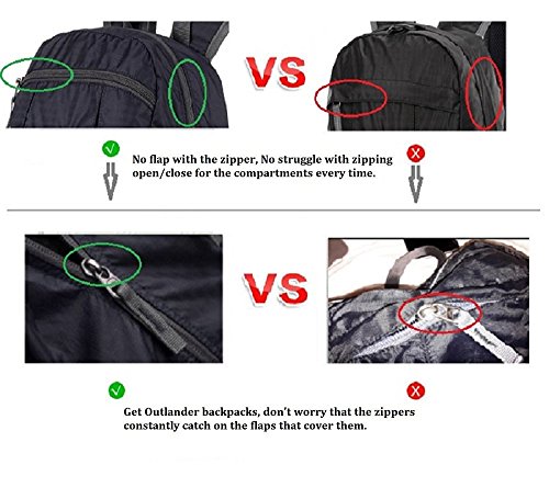 NEW VERSION: Includes aluminum CARABINER, WHISTLE buckle, and REFLECTOR. The included carabiner clip so you can attach things or clip it to things; the chest strap with a whistle buckle help you lock your backpack in place securely. NO FLAPS WITH THE ZIPPER, never struggle with zipping the compartments again! Get Outlander backpacks, don’t worry about zippers that catch onto flaps. All Outlander bags come with our Lifetime Warranty- return, exchange — whatever it takes.
