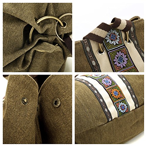 Goodhan Women Canvas Backpack Daypack Casual Shoulder Bag, Vintage Heavy-duty Anti-theft Travel Backpack