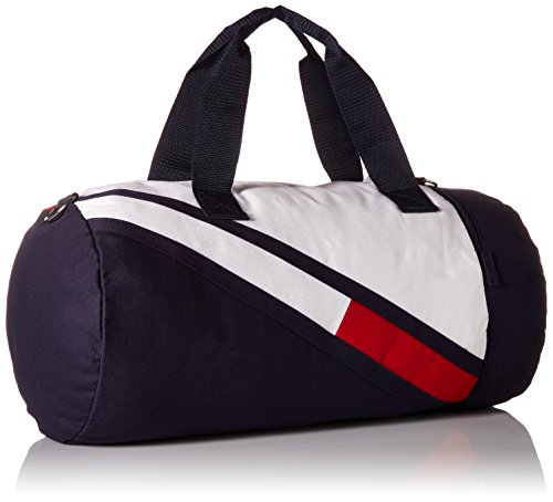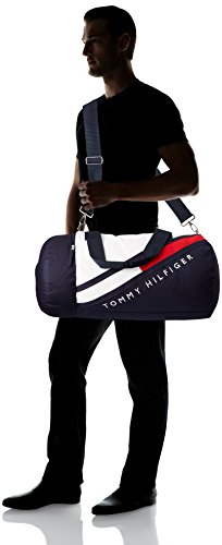 Tommy Hilfiger duffle bag featuring the iconic flag logo. Exterior shoe garage and convertible strap. Two interior slip pockets. This Tommy Hilfiger duffle is a versatile essential. Whether you’re headed to the gym or a weekend getaway, this tommy bag is a must-have.