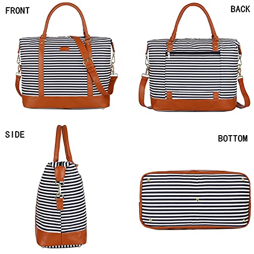 BAOSHA HB-28 Ladies Women Canvas Travel Weekender Overnight Carry-on Shoulder Duffel Tote Bag With PU Leather Strap