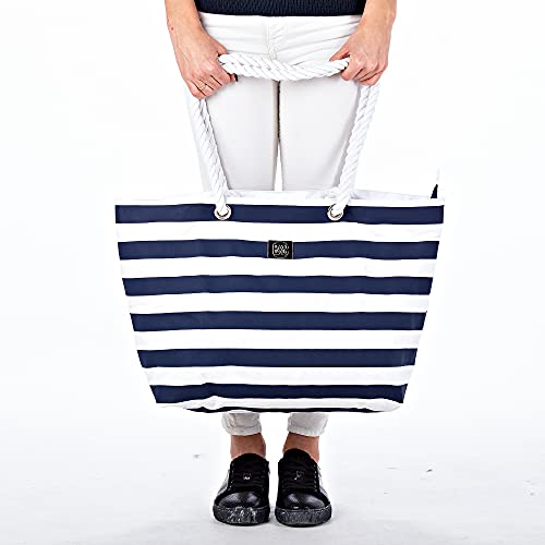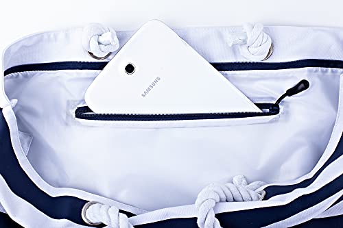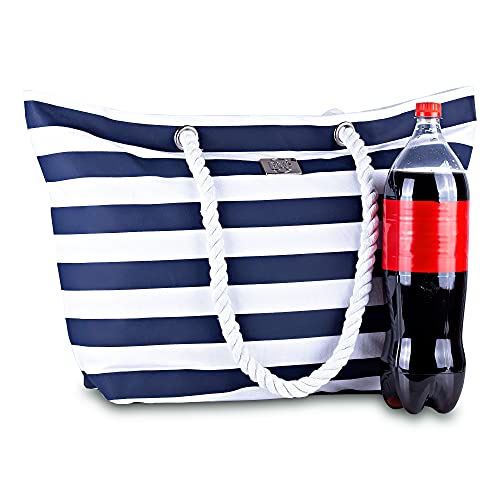 ✅ GREAT DESIGN & WATERPROOF LINING: This handy beach bag features two inner zippered pockets to store all your valuables, like wallet, keys, money, smartphone or even tablet secured and water protected. The nylon lining is 100% waterproof. All Bag&Carry beach bags come with sturdy, colored zippers with very convenient pullers. Top zipper keeps the bag closed holding all your stuff inside.