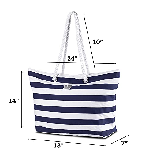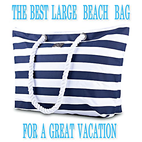 Large Tote Beach Bag – Top Zipper Closure – Waterproof Lining – Tote Shoulder Bag For Gym Beach Travel