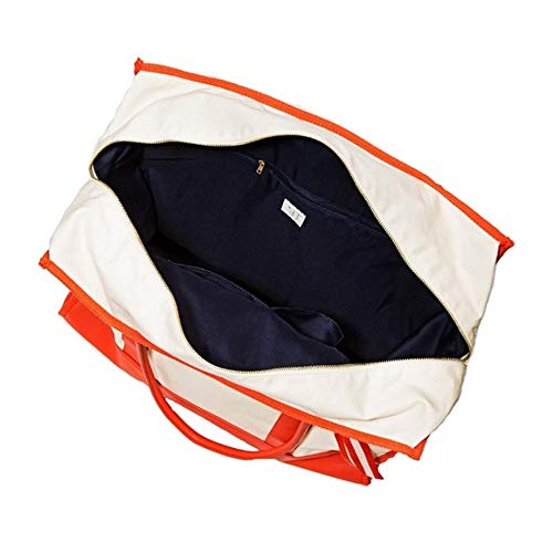 Weekender Bag, Large Expandable, Canvas Buff White Coral Orange. Overnight Travel Carry On Shoulder Duffle Tote Bag. 16.5 inches (H) x 19 inches (W) x 9 inches (D) Nice Big Purse