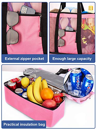 Excelent Insulated Cooler Bag: The solid zipper perfectly connects the cooler bag and the main beach mesh bag, and two-way zippers to put in items and take them out easily, the waterproof beach cooler have insulation and leakproofness, it makes water, drinks, fruit be fresh when you plan to enjoy a picnic.
