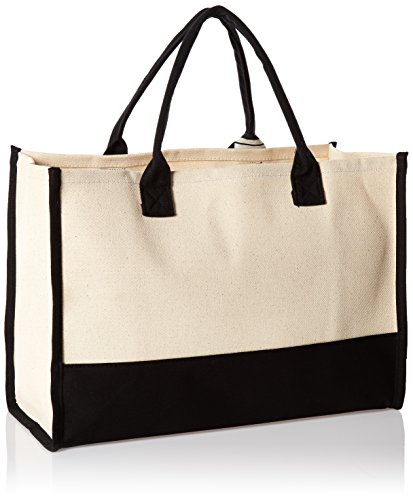 Natural and black canvas tote features black embroidered initial. A classic bag perfectly suited for the mall, office, beach, boating and all your everyday travels.