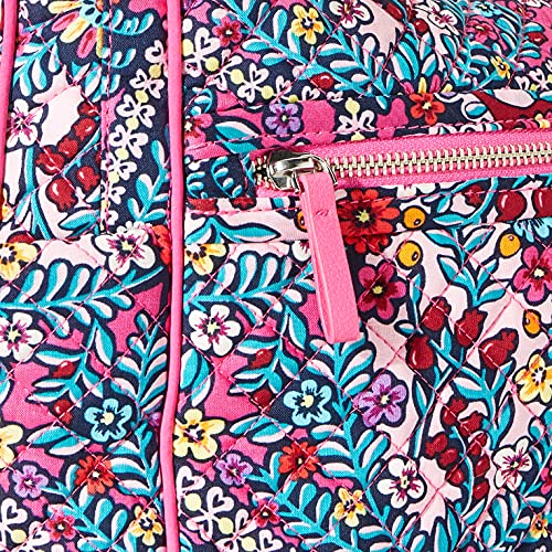 Our quilted cotton is colorful, lightweight and packable. Exterior features a front zip pocket, a back slip pocket with magnetic closure and 2 side slip pockets. Interior features 2 slip pockets, 2 elastic slip pockets and 1 zip pocket. Zip closure. Machine wash cold gentle cycle. Use non-chlorine bleach as needed, line dry.