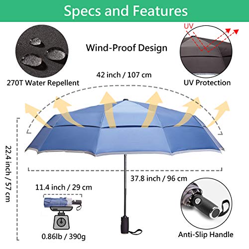 ☔ FOLDABLE PORTABLE & LIGHTWEIGHT – Your very own Wind Resistant Personal Handheld Automatic Compact Size and Ultralight Design for Portable EZ Easy Use Umbrella. Folding at Ease and Fits compact inside purse, bags, briefcases, backpack, bookbag, luggage, cars and more. Perfect for work, men, women, male, female, ladies, adults, teens, girls, boys, and kids without needing a raincoat! Two Sizes to choose from! 42 inch / 46 inch version umbrella.