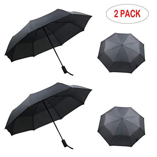 PFFY 2 Packs Travel Umbrella Windproof Auto Open & Close Collapsible Folding Small Compact 10 & 8 RIBS Backpack Car…
