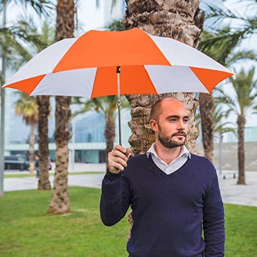 LIGHT, COMPACT, AND EASY TO CARRY. This umbrella opens to a 42″ arc (38″ diameter) and folds down to a small 15″ length, so it’s easy to take along with you when shopping, going to work, walking your dog, attending sporting events or for travel! Fits easily in your bag. Color coordinated case. Matching wrist strap on handle.
